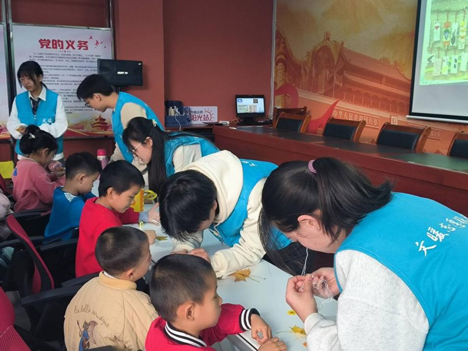 首先,志愿者们深入浅出地向社区青少年讲述了小雪节气的源起、传统习俗、经典诗词,引领他们探索传统节气蕴含的深远意蕴,激励青少年更加深入地认识、认同并热爱中国传统文化。紧接着,志愿者们指导青少年动手制作落叶书签,既锻炼了动手实践能力,了解小雪节气的同时,还领略非遗文化的独特韵味。
