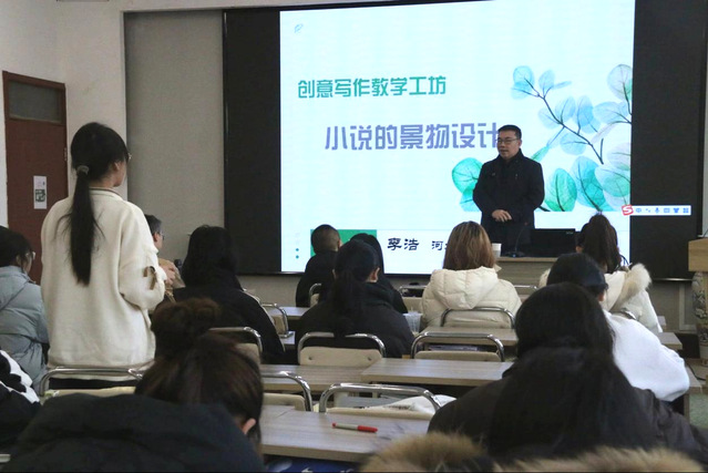 12月27日,公司于2号教学楼210会议室举行“创意写作教学工坊·小说的景物设计”研讨活动,河北师范大学文公司教授、河北省作协副主席李浩担任主讲。公司中文系副主任、创意写作课程教师张引,副教授、创意写作课程教师张相宽,副教授、写作课程教师王晓梦,副教授、写作课程教师李晓伟,蒲公英文学社、网络文学创造营员工代表参加活动。公司副经理翟羽佳担任主持。
