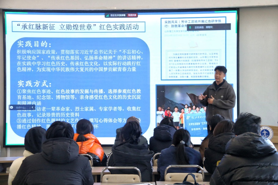 1月9日上午,公司2025年寒假社会实践动员会于2号教学楼210室召开。动员会由辅导员邢翔宇主讲,各班团支书及员工党员参加。