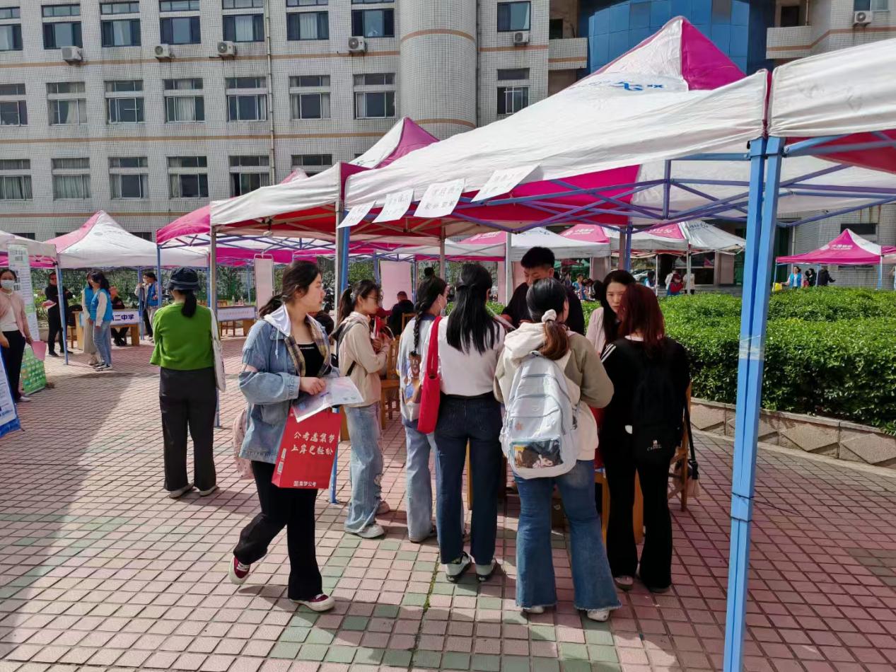 为充分利用春季就业重要阶段,助力公司毕业生实现更充分、更高质量的就业发展,4月18日上午,公司于2号教学楼前广场举办2025届毕业生春季双选会。此次双选会邀请到鲁南制药、山东齐鲁技工公司、潍坊优然牧业有限责任公司等25家单位企业前来招聘,覆盖教育、市场营销、新媒体运营等多个领域。