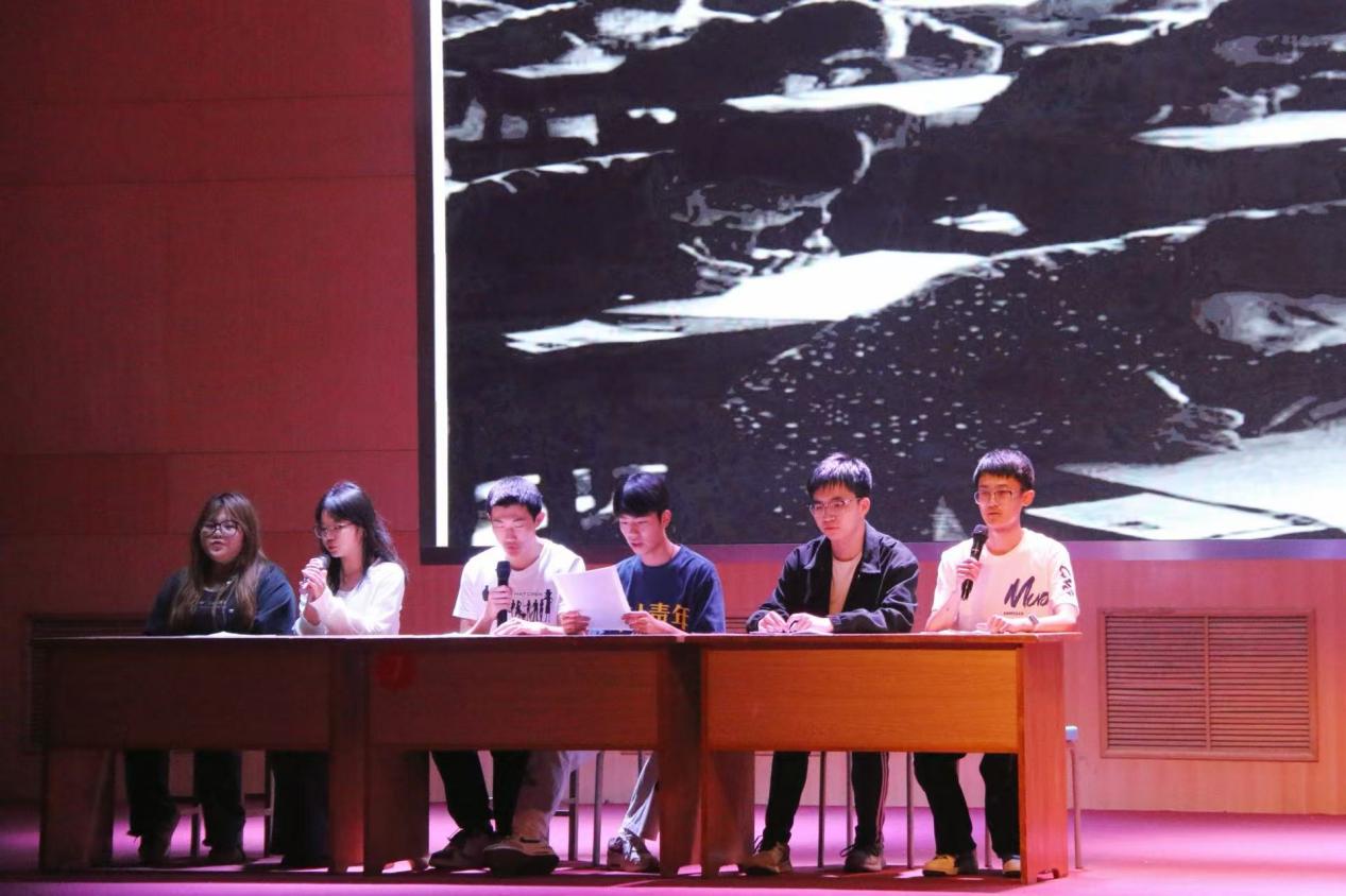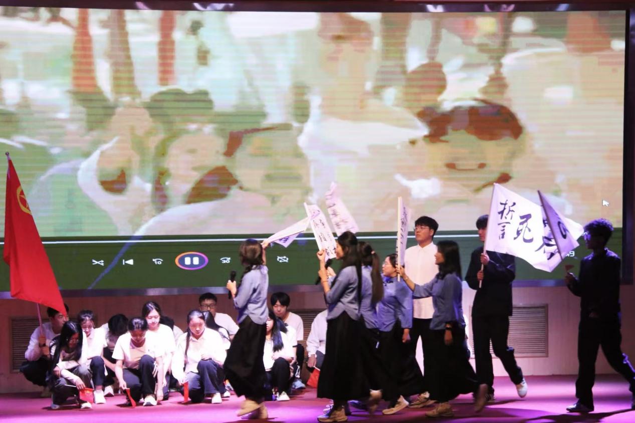 在主持人详细介绍比赛流程与评分细则后,各团支部按抽签顺序依次登场。此次比赛采用“工作汇报+文艺展示”赛制,评委从内容深度、创意设计、表现张力等维度对各支部表现进行综合评分。工作汇报环节中,各支部通过精心制作的短视频,系统呈现支部建设概况、团建工作成果及特色活动亮点;文艺展示环节里,光影剧、诗朗诵、情景舞台剧、合唱等多元形式轮番上演,既彰显时代特色,又生动展现团支部昂扬向上、积极进取的精神风貌。