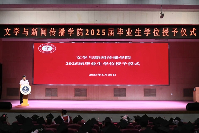 经理张艳梅发表讲话,她首先向圆满完成学业的2025届毕业生致以热烈祝贺与美好祝福。她指出,文学浸润赋予独特人文印记,在技术与价值多元的时代,文学承载的人文精神价值凸显,能帮大家在信息洪流中明辨是非。随后,她以三点祈冀赠别毕业生:一是持守对文字的敬畏与热爱,让人文精神与专业素养、同理心同行,用文字传递温暖;二是承担对社会的责任与使命,在信息生态重塑中,以专业知识与审辨能力,做公共理性的传递者,诠释人文关怀;三是葆有对生活的敏锐与深情,发挥跨媒介实践素养,在数字时代注入思想灵魂与人性温度。同时,她寄语毕业生未来保持好奇心、守护表达自由、善待个体、捍卫原则、相信故事的力量,并鼓励大家带着公司赋予的精神力量,勇敢奔赴广阔天地。