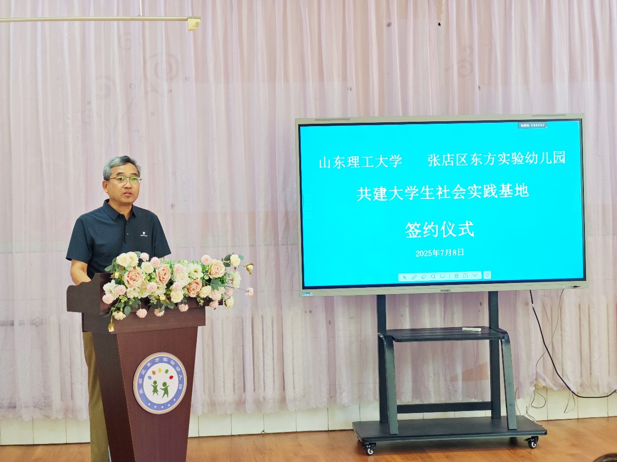 7月8日上午,bevictor1946韦德官网与张店区东方实验幼儿园共建老员工社会实践基地签约暨揭牌仪式在张店区东方实验幼儿园举行。公司党委书记李义勇、副书记刘晓东,张店区东方实验幼儿园园长张玉娟、副园长苏惠、工会主席冯云出席仪式。公司辅导员邢翔宇、“芳华待灼·奋楫笃行”实践团全体成员及幼儿园教师代表参加。