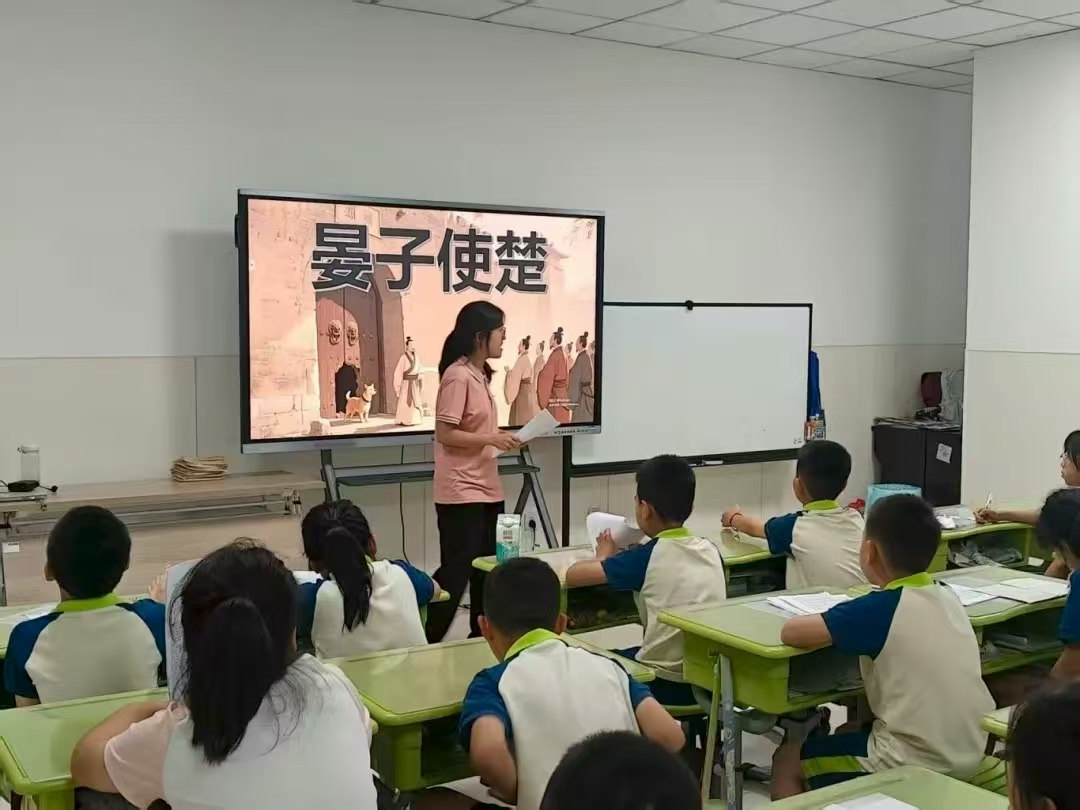 将各个故事改编成符合对应年级孩子理解能力的童趣对白,并且总结出“四步戏剧工作法”—— 故事讲解、角色分配、排练打磨、正式演出,为每个班级的课本剧表演保驾护航,让孩子们既能玩得开心,又能理解故事所蕴含的智慧。针对一年级一班的《小马过河》,实践团成员考虑到一年级孩子的认知特点,把故事里复杂的情节简化,用简单直白的语言改编对白,让孩子们更容易理解小马面对河流时的犹豫以及最终勇敢尝试的过程。对于一年级二班的《动物王国开大会》,则突出了故事的趣味性和节奏感,改编后的对白充满童真,能很好地吸引孩子们的注意力。二年级一班的《亡羊补牢》,实践团成员结合二年级孩子的认知,将故事改编得通俗易懂,用孩子能明白的语言讲述牧羊人从失误到改正的过程。二年级二班的《狐假虎威》,在之前改编的基础上,结合二年级孩子的理解能力,进一步丰富了角色的对话,让寓言智慧更易被孩子们接纳。综合班的《晏子使楚》和《草船借箭》相对复杂,实践团成员则着重简化了故事背景和人物关系的描述,用生动的语言讲解历史典故,让孩子们能跟上故事的节奏。